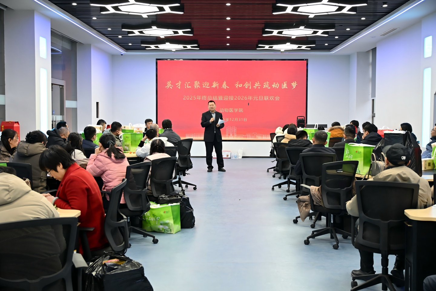 2025年12月31日下午,70net永乐高举行“英才汇聚迎新春,和创共筑动医梦”年终总结暨2026年元旦联欢会。学院全体教职工欢聚一堂,共同欢迎学院新引进的高层次人才冯力教授、李朝阳教授,总结过往,展望未来,喜迎新年。
