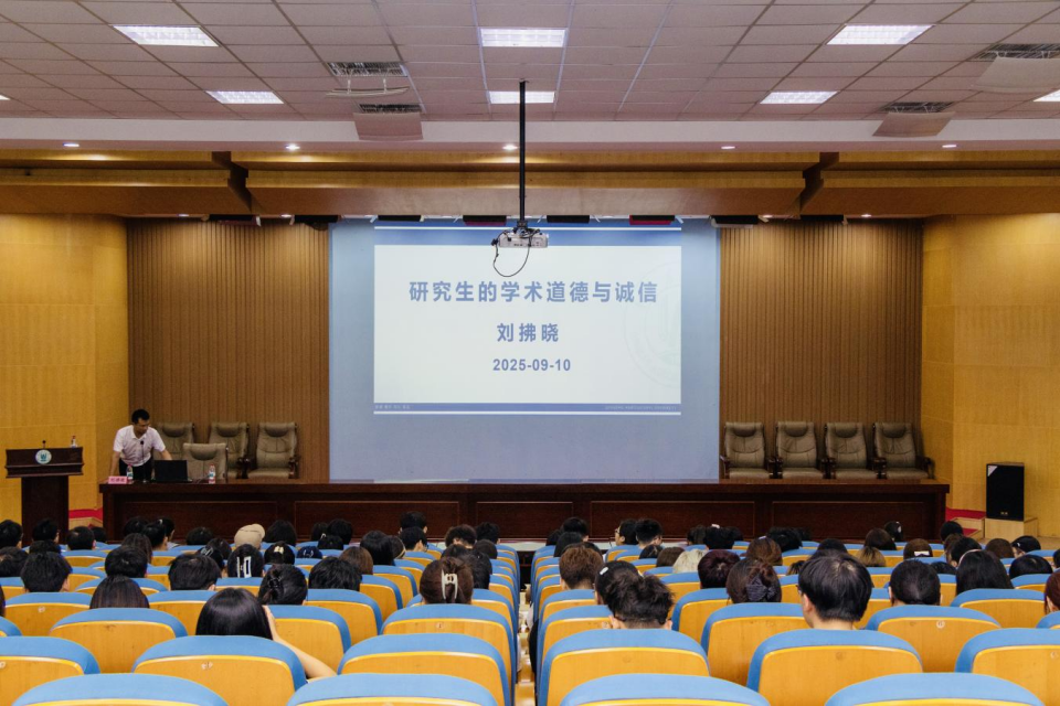 9月10日,70net永乐高党委委员刘拂晓教授以“研究生的学术道德与诚信”为题,为2025级研究生新生作专题报告,系统阐释学术诚信的核心要义与实践要求,为新生筑牢学术生涯“道德基石”。