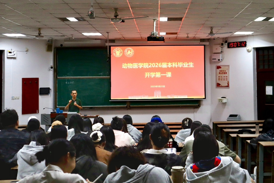 动医创新2101班王逸群同学表示:“这堂‘开学第一课’不仅让我对考研推免政策和企业招聘信息有了更清晰的认识,更重要的是,让我深刻认识到作为动医学子的时代责任和历史使命。我将认真规划未来,争取到乡村振兴一线去服务奉献。”多名毕业生表示,课程帮助他们澄清了职业发展方向,增强了服务国家战略的使命感。大家普遍认为,这是一堂既有政策指导性又有思想启发性的毕业指导课,让人受益匪浅。同学们纷纷表示,将牢记老师的教诲,坚定理想信念,练就过硬本领,以实际行动服务国家、奉献社会,在实现中国梦的伟大实践中书写别样精彩的人生。