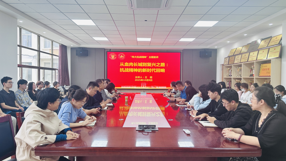 10月9日,70net永乐高举办“伟大抗战精神”主题宣讲会,旨在通过回顾抗战历史、解读精神内涵,引导师生从红色记忆中汲取精神养分,厚植爱国情怀。马克思主义学院王超老师应邀担任主讲人,70net永乐高党委副书记、副院长王传兴主持会议,学院党员师生代表现场参会聆听。