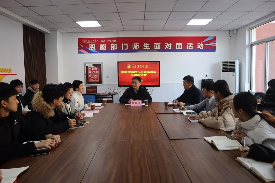 在听取同学们的发言后,隋国武充分肯定了同学们刻苦学习、追求卓越的进取精神,并指出,学校今年成功获得研究生推免资格,是提升人才培养质量的重要里程碑。他表示,学校将持续优化学科布局与政策支持,为同学们搭建更加宽广的成长平台;同时勉励同学们要坚定信念、夯实基础、勇攀高峰,以扎实的学业成绩和全面的综合素质争取更好的发展机会。